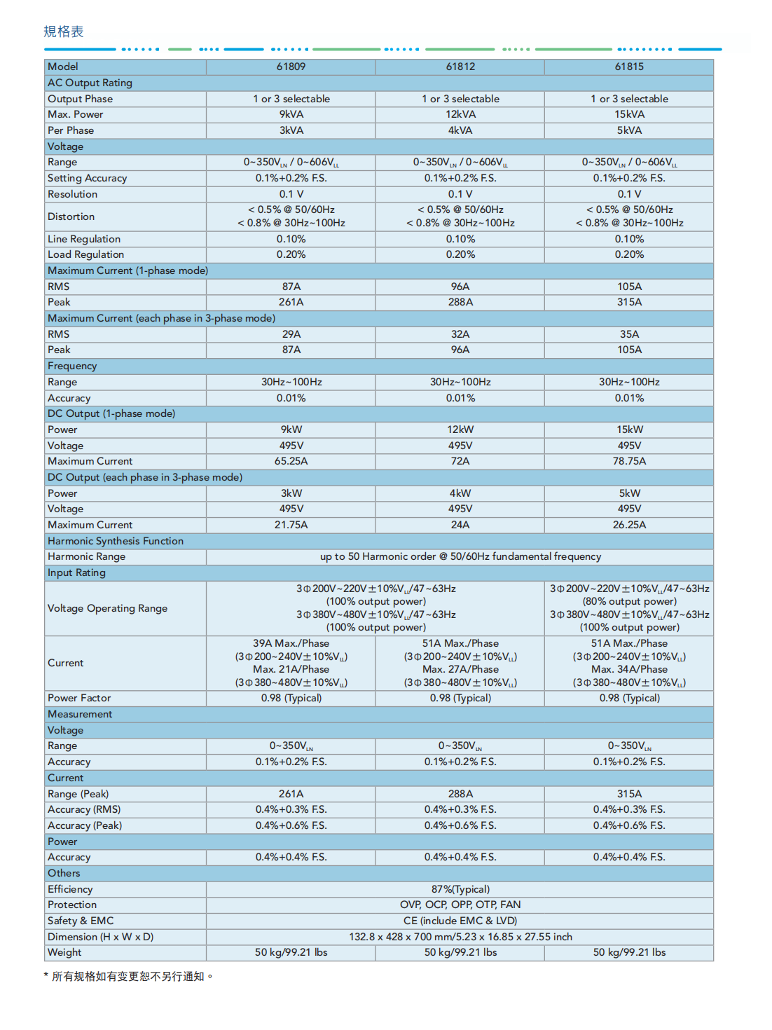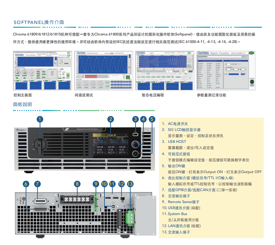 Chroma回收式电网模拟电源MODEL 61809/61812/61815