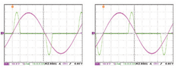 为了模拟浪涌电流(如图6所示),63800系列拥有浪涌电流模式,让用户可设定不同的浪涌电流的起始角度,如此使用者可节省下许多在量测浪涌电流时所需花费的时间。