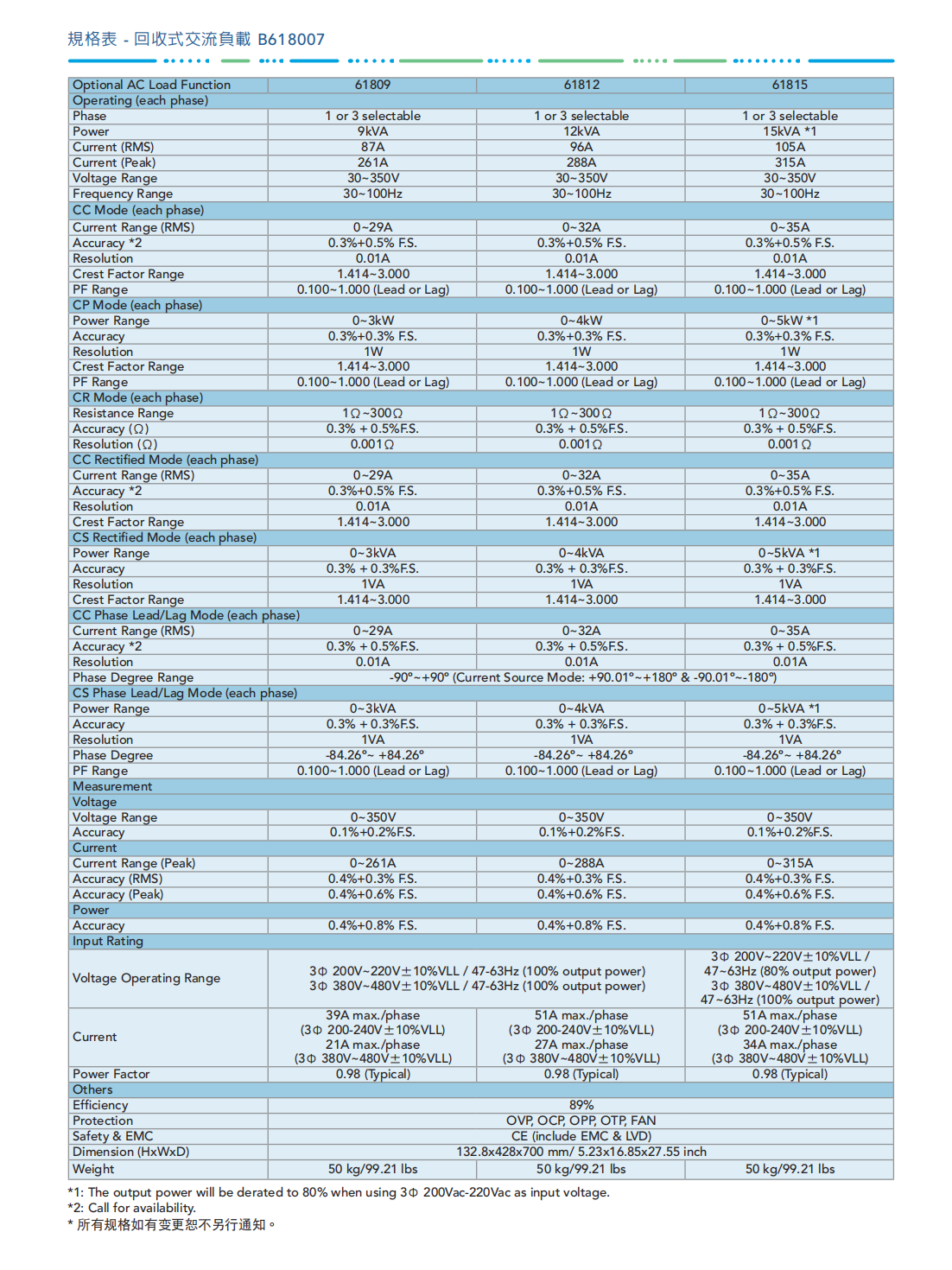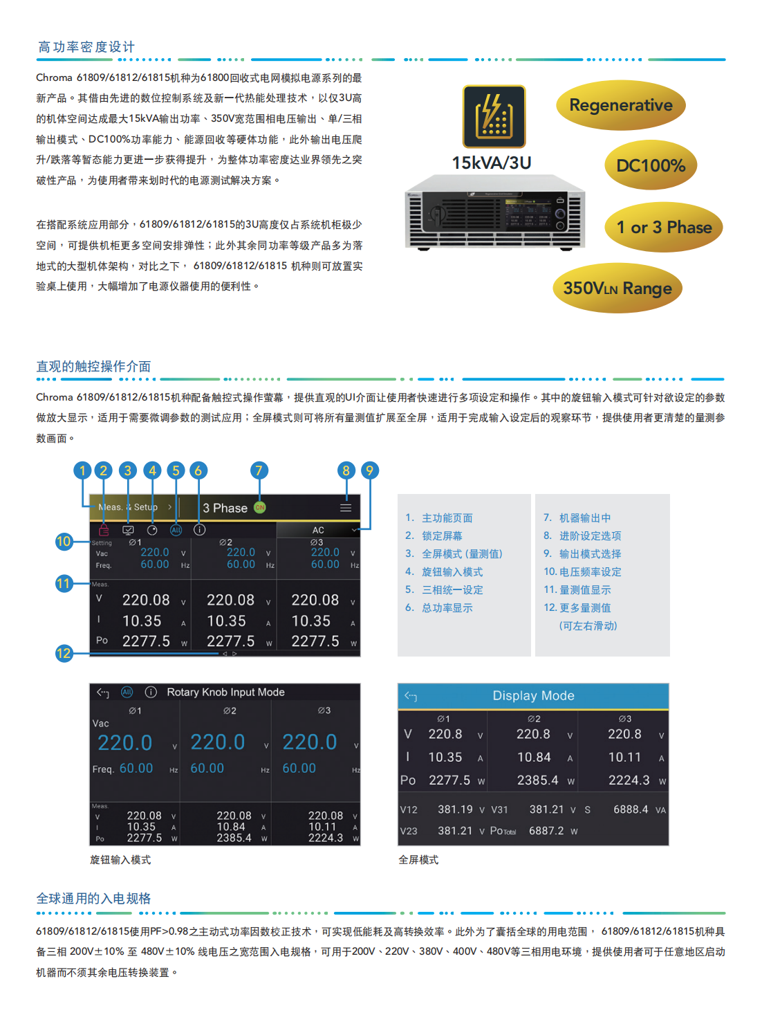 Chroma回收式电网模拟电源MODEL 61809/61812/61815