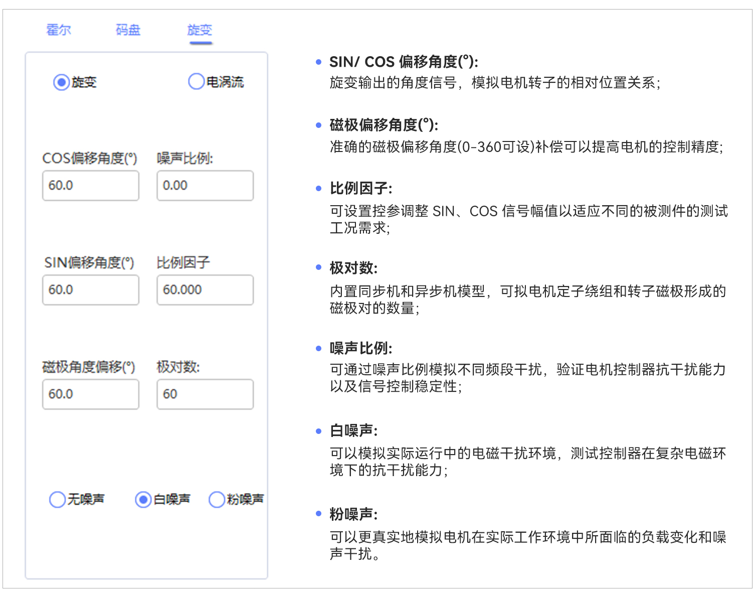 | M2000-MS电机模拟器位置传感器——旋变、电涡流设置界面以及核心控参